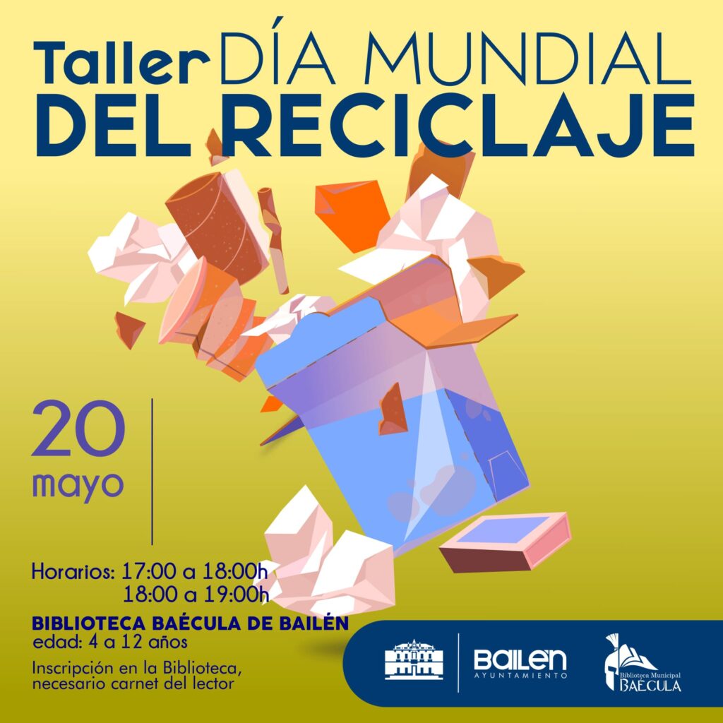 ● Se realizará el viernes 20 de mayo a las 17.00 y 18,00 horas La Concejalía de Cultura, a través de la Biblioteca Municipal de Bailén anima a los pequeños a participar en un taller de manualidades dedicado al día del reciclaje que se va a realizar el próximo 20 de mayo. El taller va […]